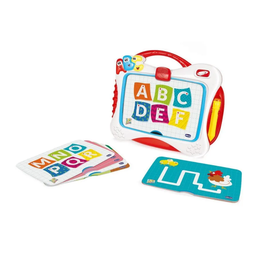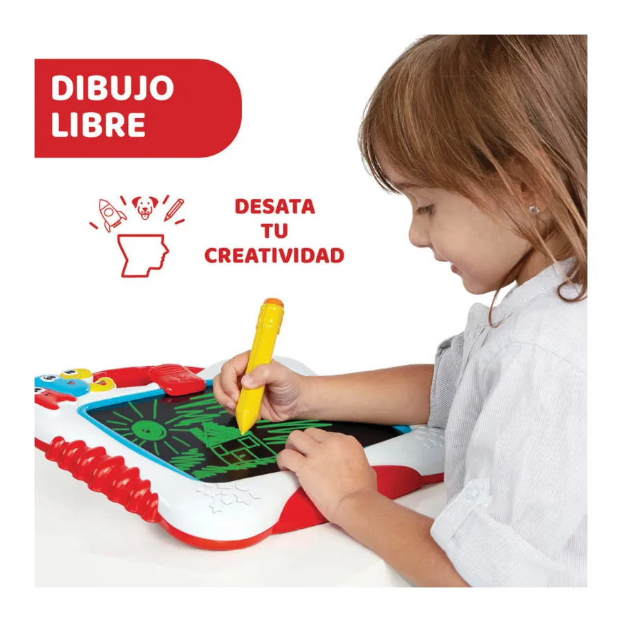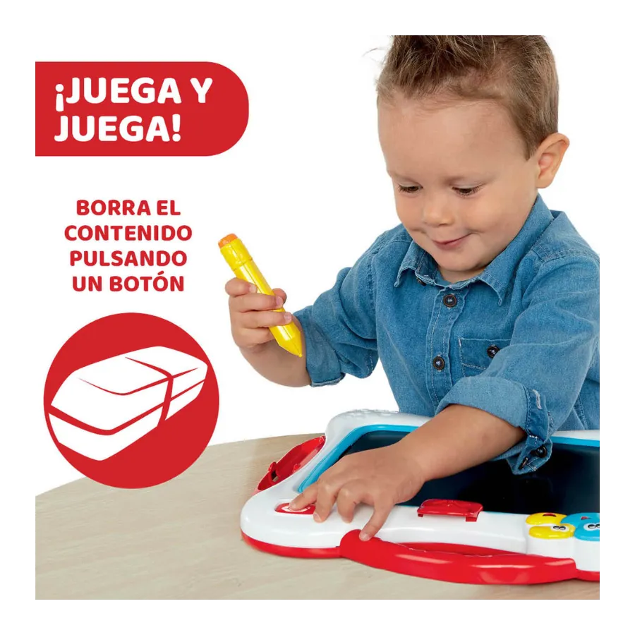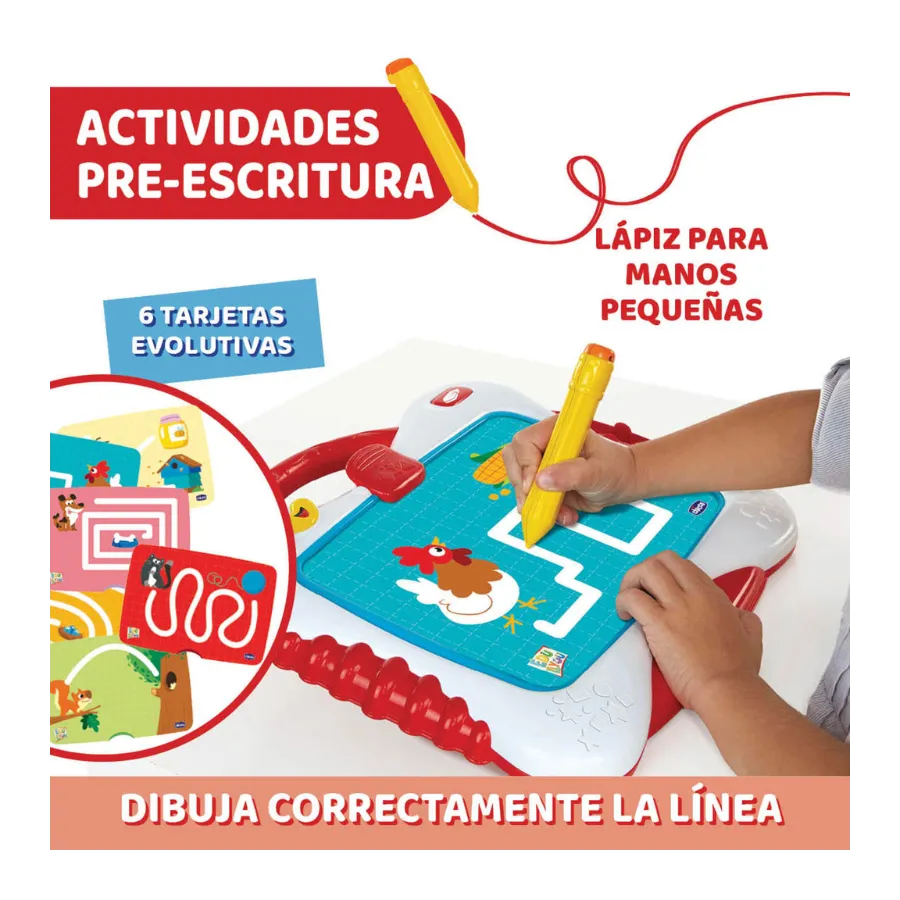 La pizarra educativa Chicco ha sido diseñada especialmente para los más pequeños. Su formato interactivo, sus colores vivos y su sistema de tarjetas didácticas convierten cada momento de juego en una oportunidad para aprender.