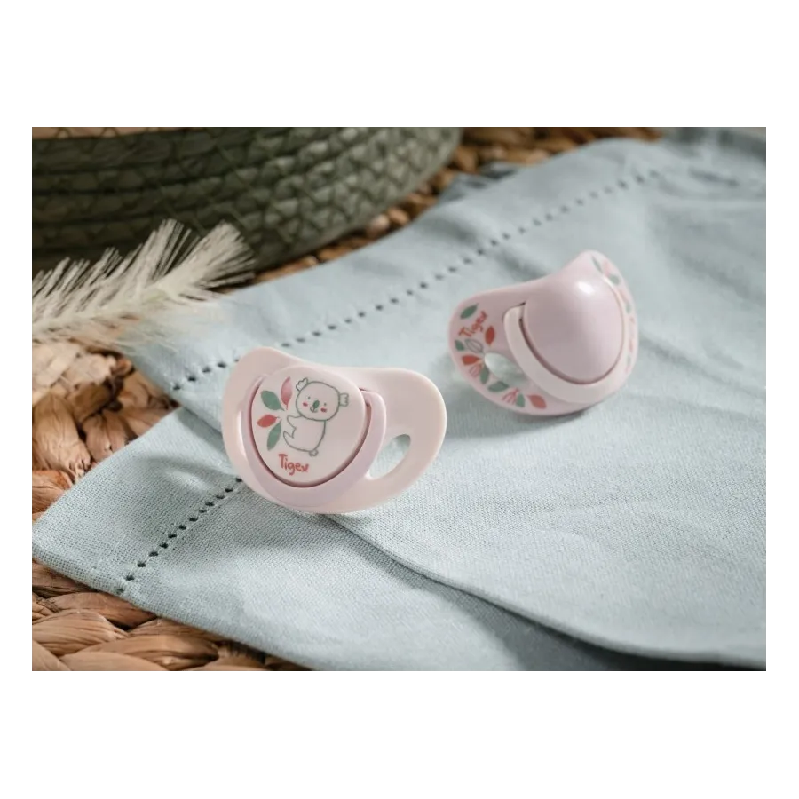 El pack de 2 chupetes Tigex Smart T2 está diseñado especialmente para bebés de 6 a 18 meses, una etapa clave en su desarrollo bucal. Están fabricados en silicona médica de alta calidad, un material suave, resistente y completamente libre de BPA, lo que garantiza la seguridad del bebé en cada uso.