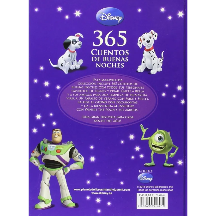 365 cuentos de buenas noches Disney es un volumen con un cuento para cada día protagonizado por personajes más queridos de Disney y Pixar.