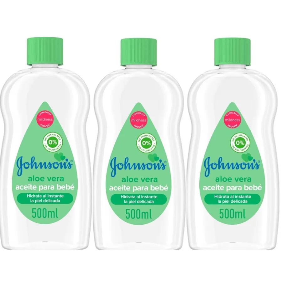 Aceite corporal Johnson’s Baby con aloe vera. Pack Ahorro 3 x 500 ml