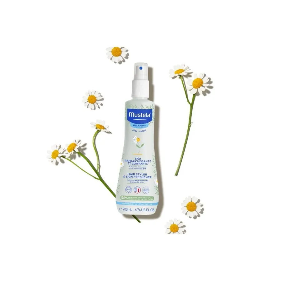 El agua para peinar refrescante de Mustela elaborada con un 98% de ingredientes naturales puede utilizarse en el pelo y el cuerpo en cualquier momento del día. Será tu mejor aliada para refrescar al bebé de forma agradable en momentos de calor intenso y desenredar el pelo