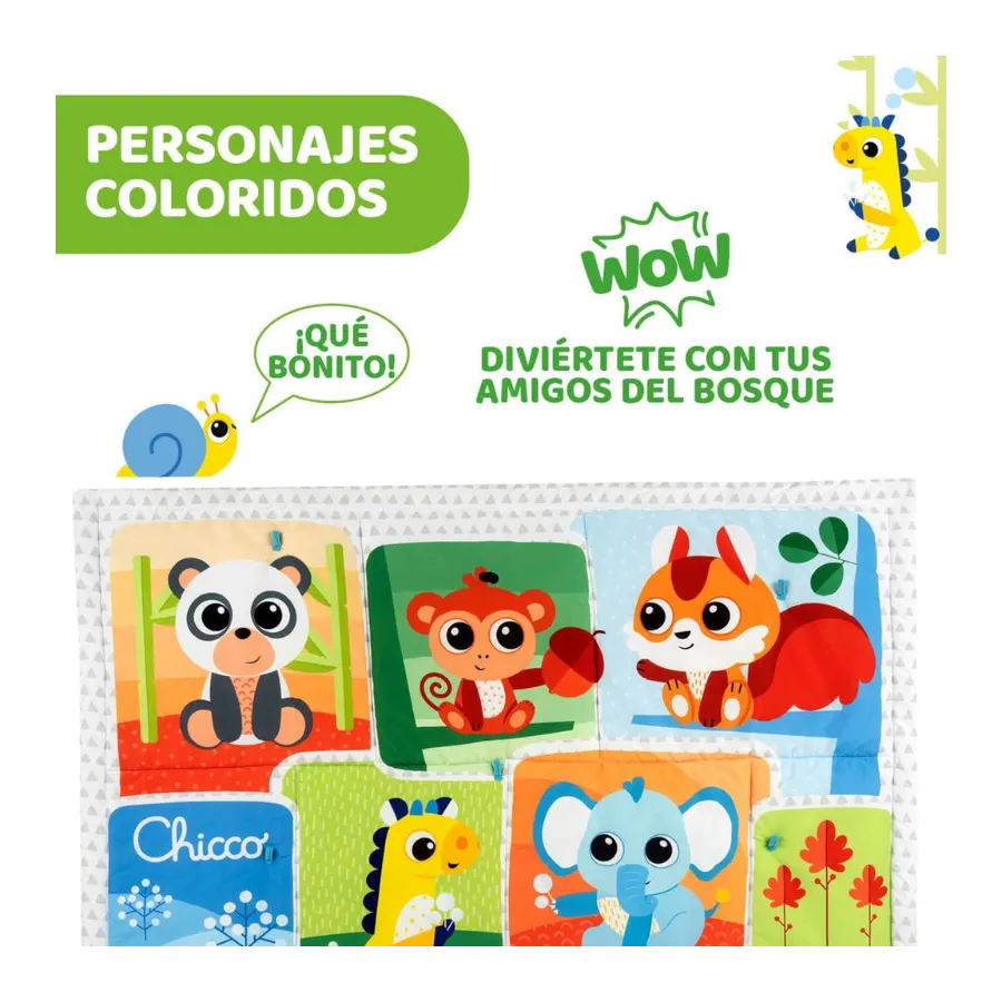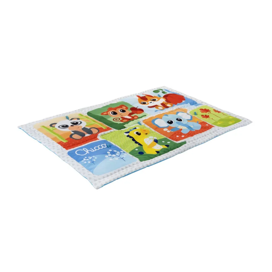La Alfombra Infantil Amigos del Bosque de Chicco es mucho más que una superficie acolchada: es un entorno de juego diseñado para estimular los sentidos del bebé, fomentar su desarrollo y ofrecerle un espacio cómodo y cálido para explorar.