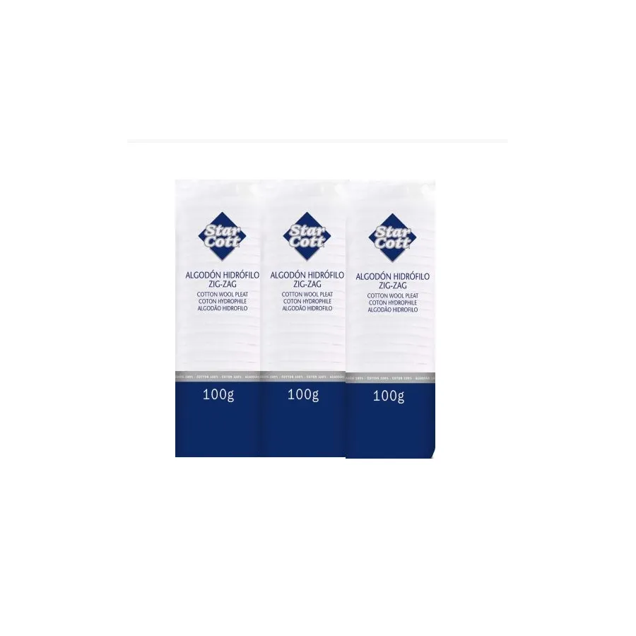 El algodón hidrófilo zigzag de Star Cott es imprescindible en el botiquín de todos los hogares. Gracias a su potente capacidad de absorción y esterilidad es perfecto para desinfectar y limpiar heridas y para absorber de forma higiénica todo tipo de secreciones como la sangre, el pus, mucus.