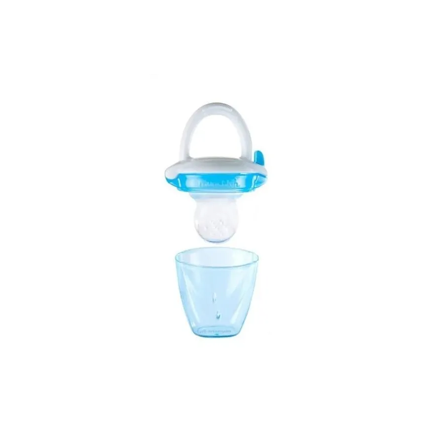 Este precioso alimentador de silicona con forma de chupete, le facilitará el proceso de introducción de alimentos sólidos. Este Alimentador ofrece una alternativa segura y fácil de dar purés tanto naturales como de bote. Posee un pequeño orificio en el fondo que deja pasar el alimento en cantidades digeribles para el bebé. También lo puedes emplear para darle alimentos como plátano y verduras trituradas.