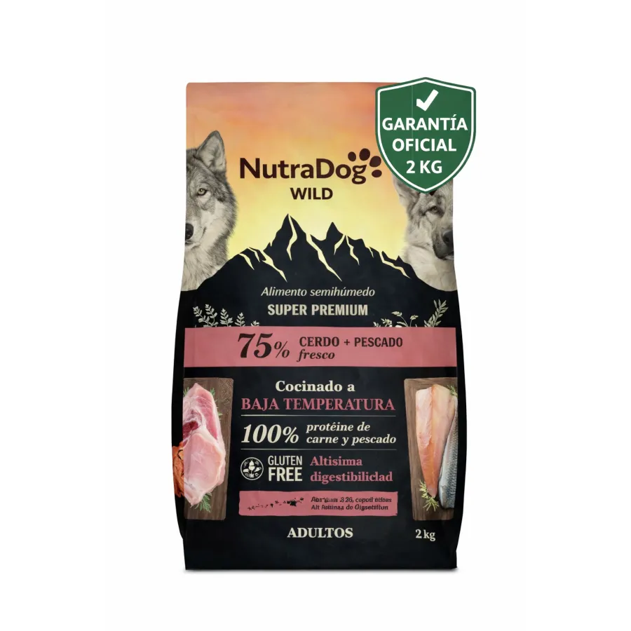 NutraDog WILD Alimento semihúmedo para perros adultos cerdo y pescado 2 kg con Garantia Oficial