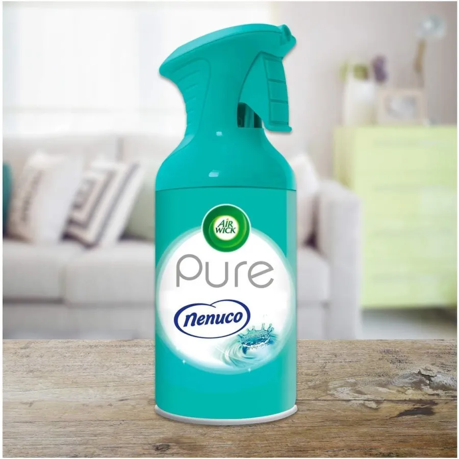 El ambientador Air Wick Pure Nenuco está formulado sin agua añadida aumentando su concentración, efectividad y durabilidad. Presentado en formato vaporizador de 250ml para expandir la fragancia por todas las áreas que se desean refrescar y aromatizar. El perfume a Nenuco es una fragancia ligera, fresca y duradera que envuelve tu hogar con olor a bebé. Neutraliza al instante otros olores y no deja residuos. Ideal para hogares con bebés y perfecto para todos los hogares. ¡Ya puedes disfrutar de la fragancia de Nenuco en toda tu casa a un precio increíble!