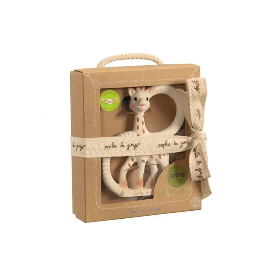 Sophie La Girafe presenta el espectacular Anillo de Dentición elaborado en caucho 100% natural. Presentado en una preciosa caja de cartón recliclado.