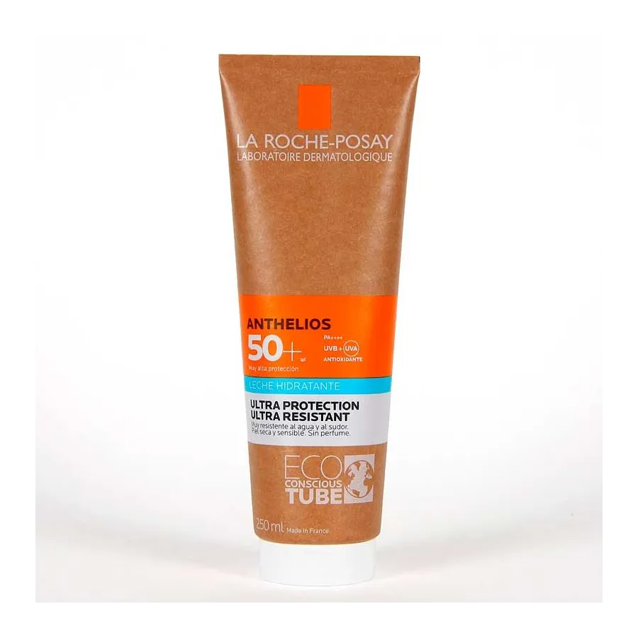 0Anthelos SPF 50+ leche hidratante de La Roche Posay , protege contra los rayos UVB/UVA, protección 50+ y resistente al agua y al sudor