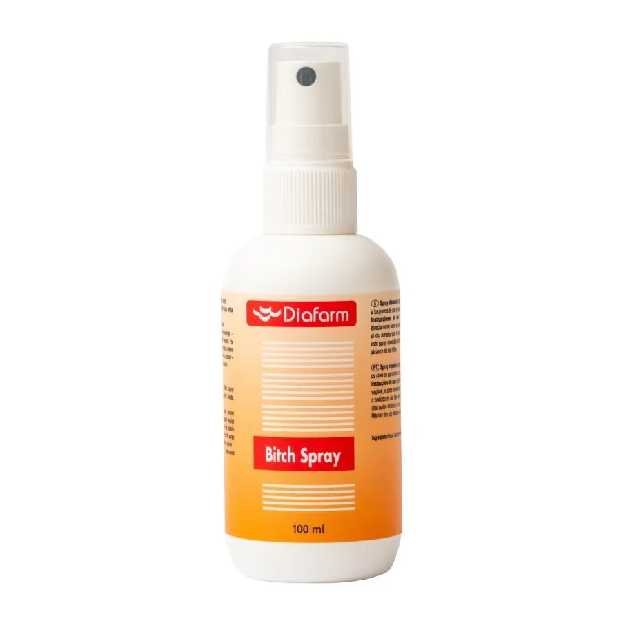 Anticelo Bitchspray, neutraliza el fuerte olor de la hembra durante el celo, manteniendo alejados a los perros gracias a su acción repelente. No es tóxico ni daña a su mascota.