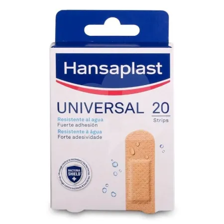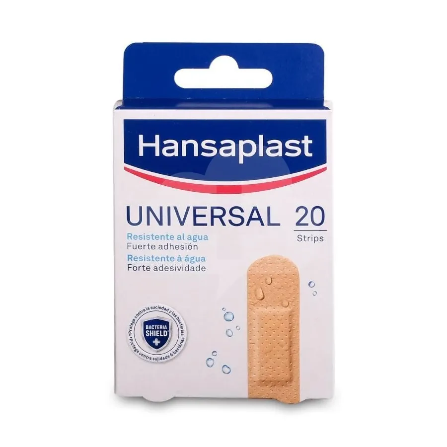 Hansaplast universal es un apósito impermeable ideal para tratar, cubrir y proteger todo tipo de heridas pequeñas o grandes. Gracias a su material fino y flexible se puede adaptar con gran adherencia a cualquier parte del cuerpo y se mantiene con firmeza evitando que la herida se moje de forma limpia e higiénica.