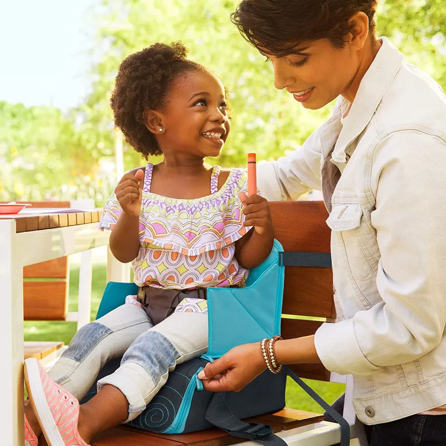 Munchkin piensa en las dificultades de las mamás y la máxima seguridad para los peques. Ha creado este precioso asiento alzador para ayudarte a la hora de la comida en cualquier lugar.