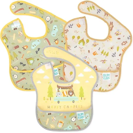 ¿Tu bebé empieza a comer solito? ¿Te preocupan las manchas difíciles? Los baberos Bumkins te ayudarán a mantener el orden y la limpieza a la hora de la comida. Ofrecen una cobertura amplia para las prendas y son cómodos, ligeros y resistentes a manchas difíciles. Pueden limpiarse con un paño y también en la lavadora. Fabricados con materiales libres de tóxicos, totalmente seguros para el bebé.