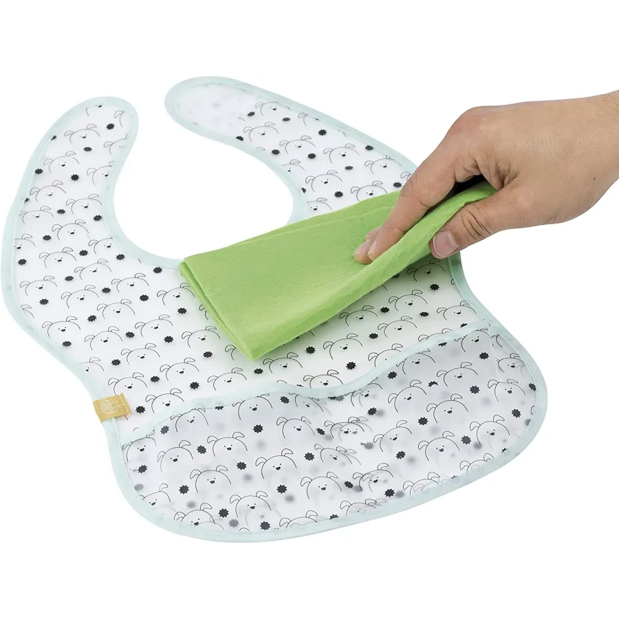 Si te preocupan las manchas, los olores en las prendas y cuidar el medio ambiente. ¡este es tu babero! Ofrece una gran cobertura protegiendo la ropita del bebé y se limpia fácilmente.