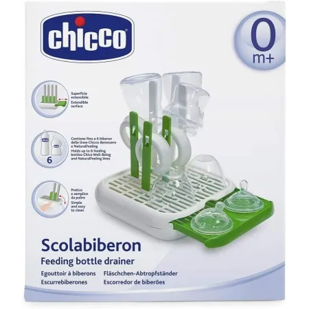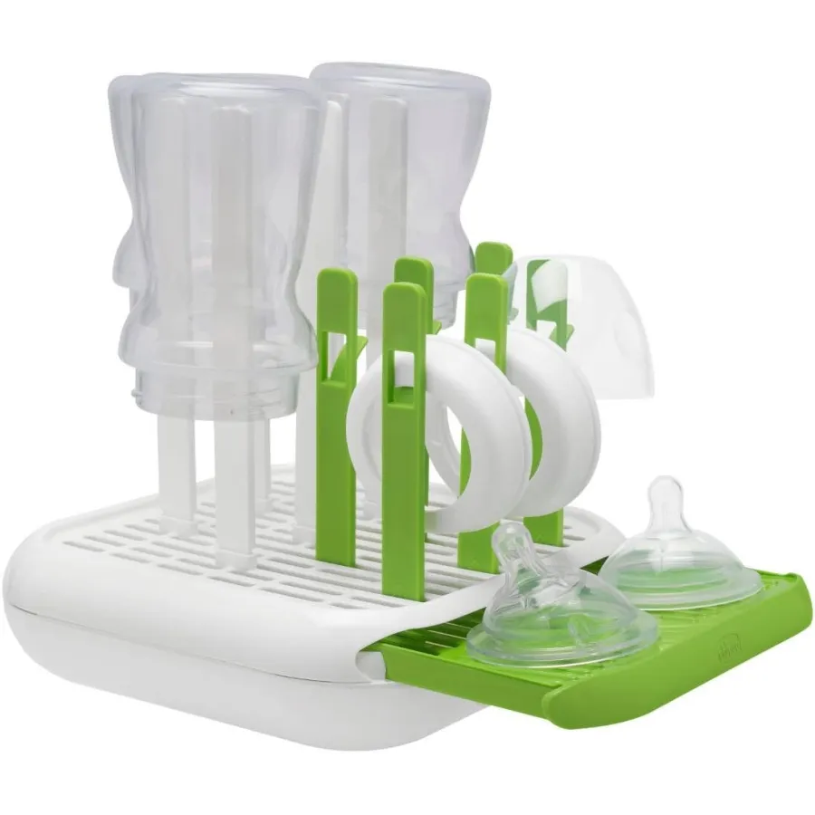 Este escurre Biberones de Chicco cuenta con una bandeja interior extraíble que puede duplicar la superficie de secado. Es perfecto para secar tras el lavado todos los utensilios del bebé ayudándote a mantenerlo todo organizado de forma higiénica.