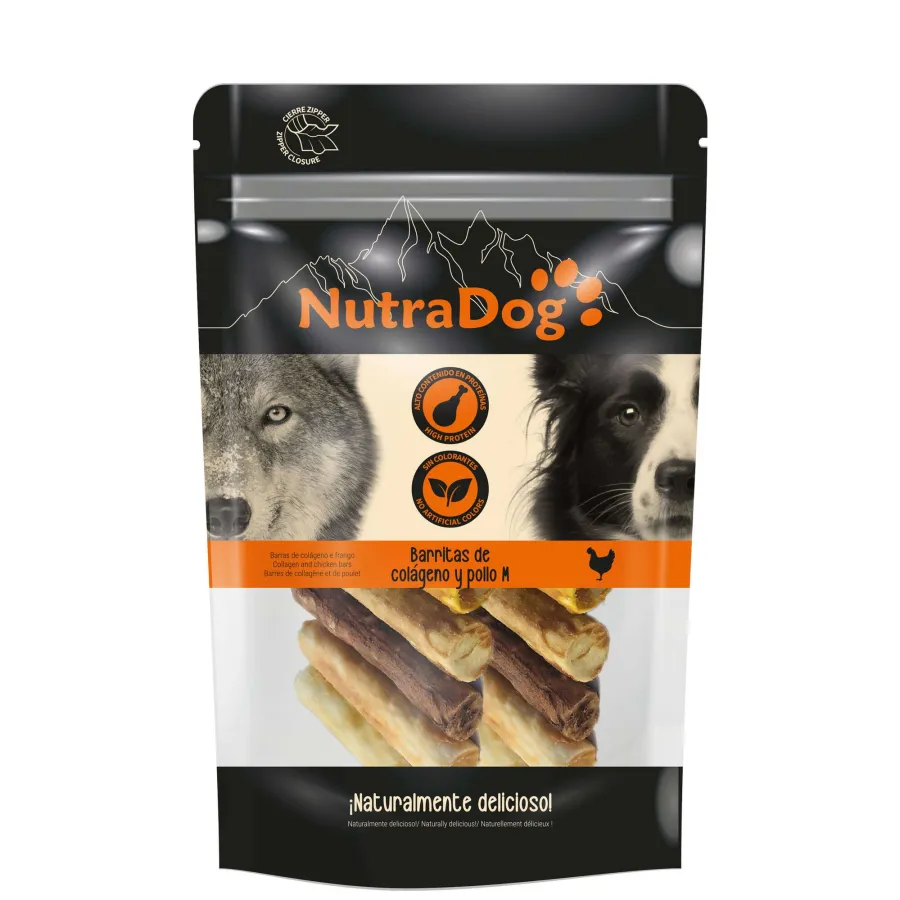 Barritas de colágeno y pollo NutraDog. 350 gr