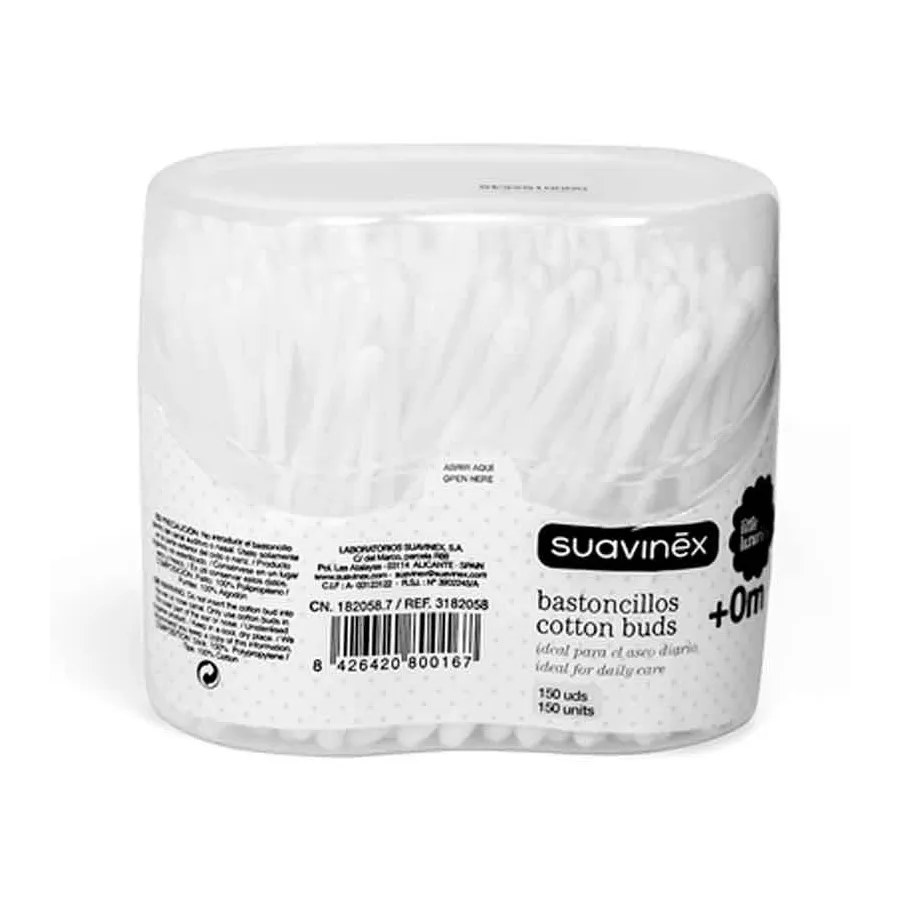 Los Bastoncillos de Suavinex son 100% algodón, especialmente pensados para la limpieza de los más pequeños. te ayudarán a limpiar suave y delicadamente el oído o la nariz del bebé y de este modo mantener una higiene perfecta.