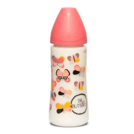 Biberón 360 ml. látex. Mariposas rosa. Suavinex