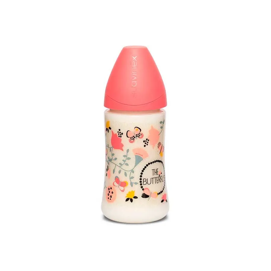 Biberón 360 ml. basic mariposas naranja. Suavinex