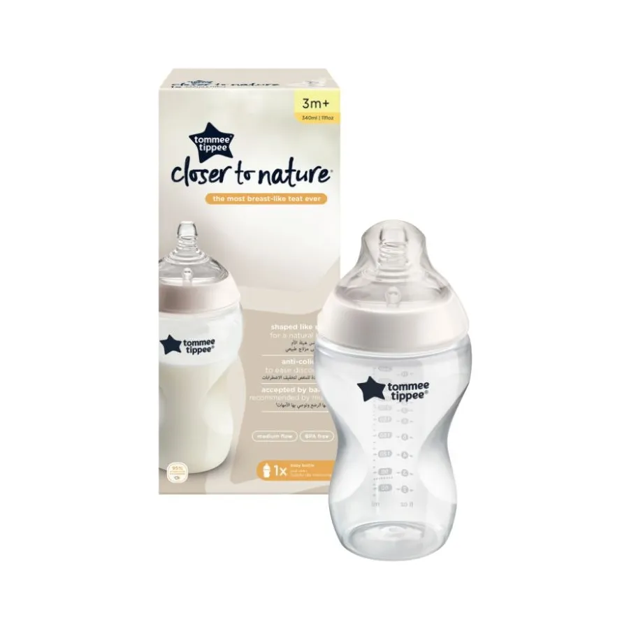 Precioso biberón Closer to Nature de Tommee Tippee de 340ml , creado posterior a años de investigación con expertos en lactancia materna, el resultado: un biberón y tetina similares al pecho materno, es perfecto para facilitar la combinación de pecho y biberón, lo que minimiza de manera importante el riesgo de rechazo por parte de tu peque