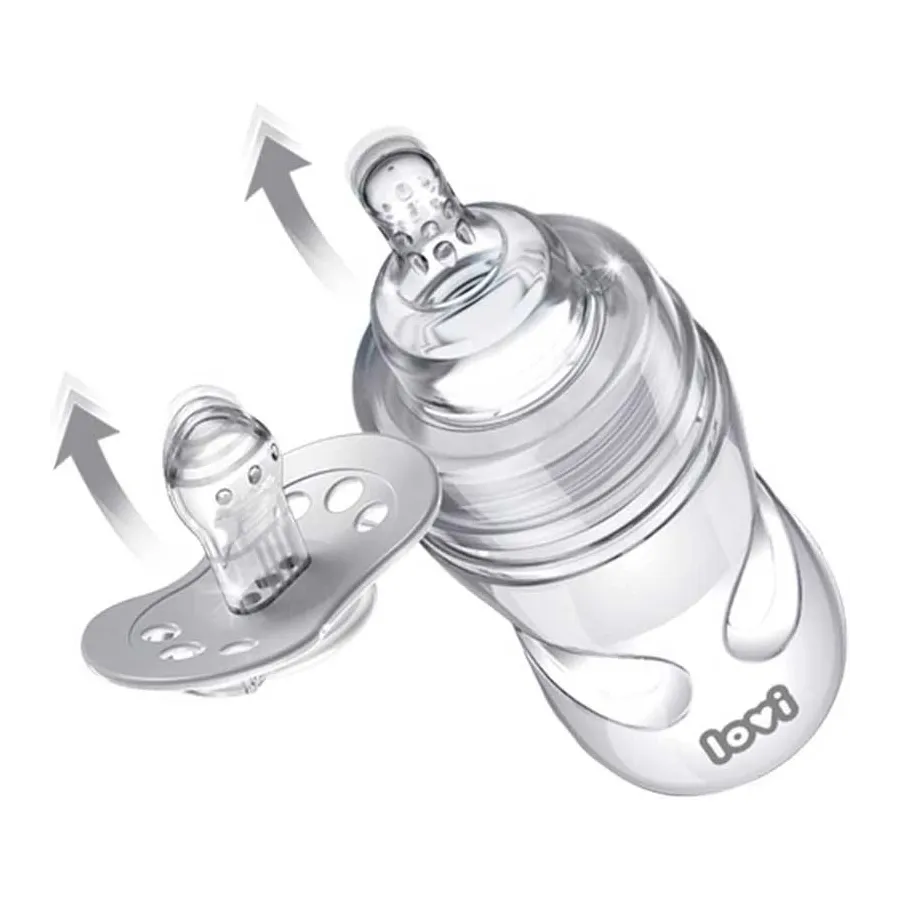 Este súper Biberón de Lovi, viene equipado con tetina dinámica SUPERvent flujo lento, es un biberón ideal para la lactancia materna, pues gracias a su exclusivo diseño no interfiere en el reflejo de succión de tu peque: