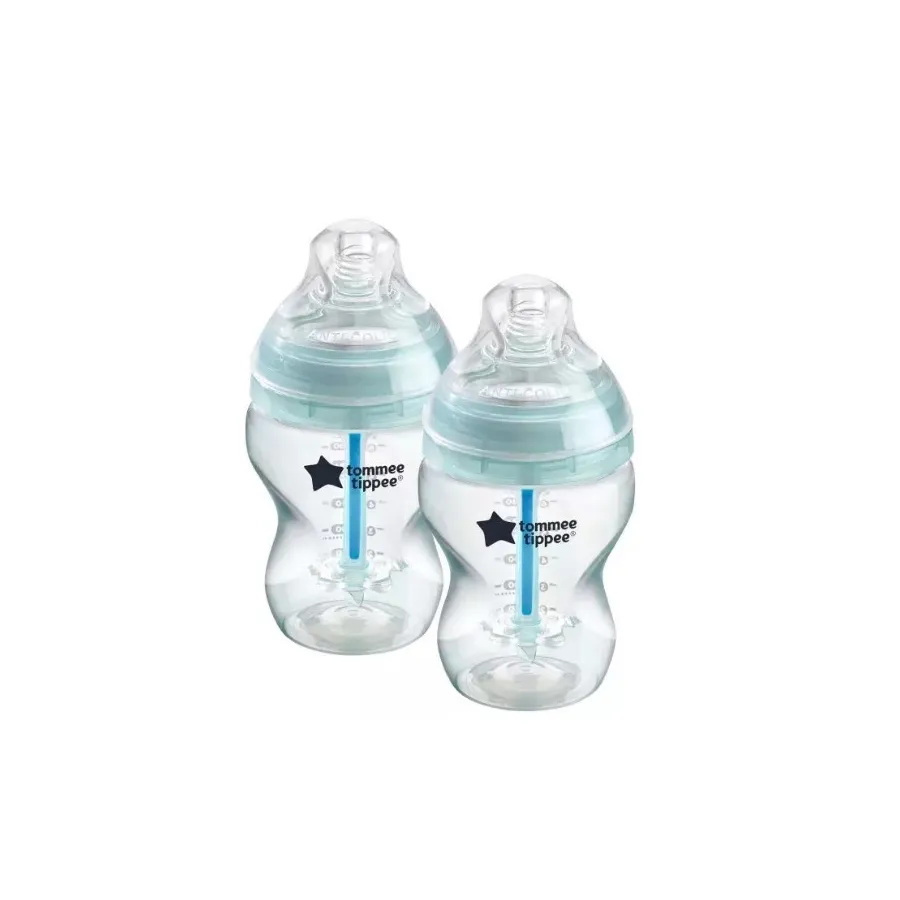 El Biberón Anticólicos Avanzado combina la tetina en forma de pecho de Tommee Tippee con un sistema anticólicos de 3 piezas único para ofrecer una aireación óptima durante la toma.