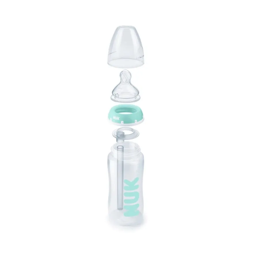 Los biberones First Choice anti cólicos de Nuk cuentan con una válvula de aire que mantiene siempre llena la tetina para que el bebé sólo tome leche, sin burbujas. La cánula dirige el aire al fondo del biberón para que no se mezcle con la leche consiguiendo que el bebé consuma íntegramente la leche sin aire. Menos aire en la barriga del bebé aliviará las molestias producidas por los cólicos y los gases aportando confort y bienestar.