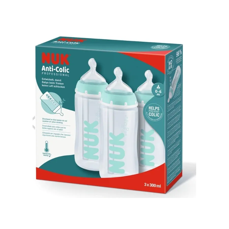 Set 3 biberones First Choice anticólicos (0-6m) Silicona 300ml. Nuk