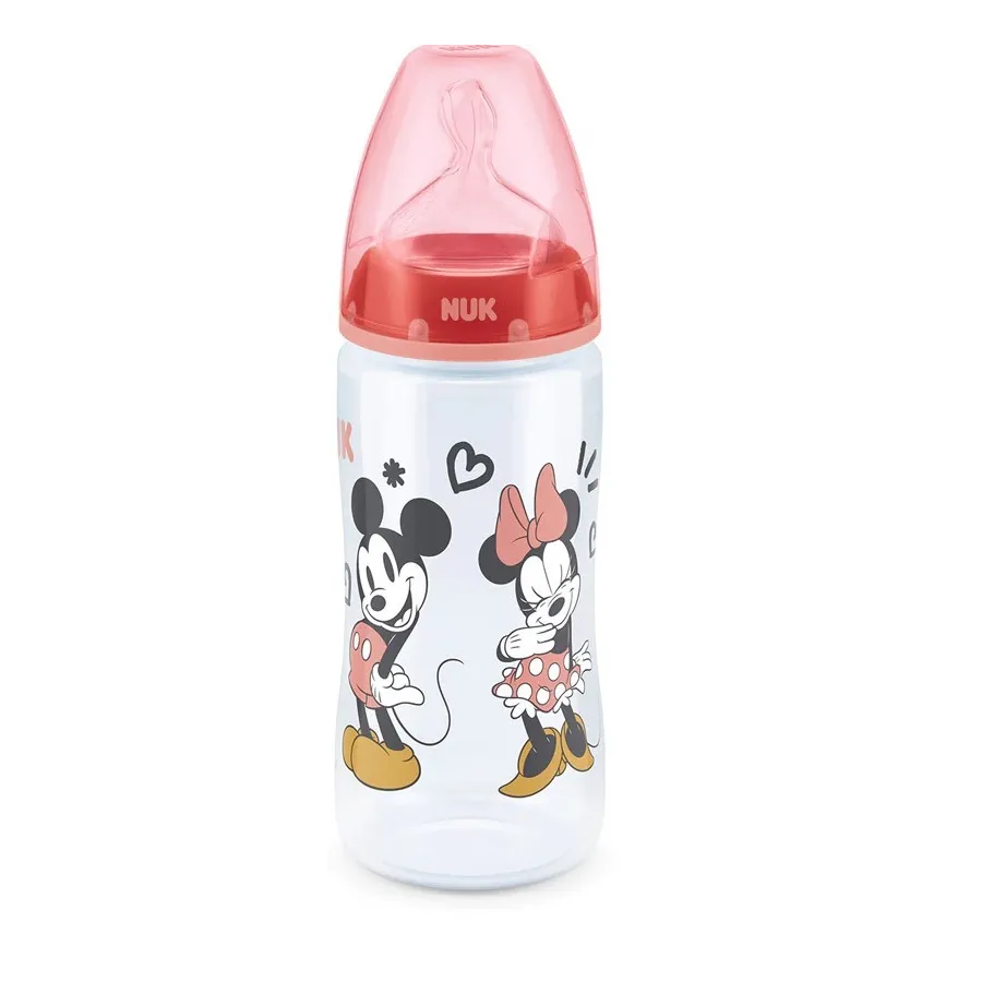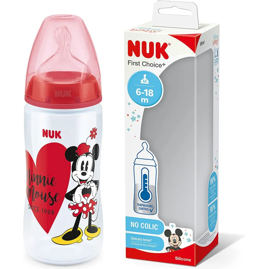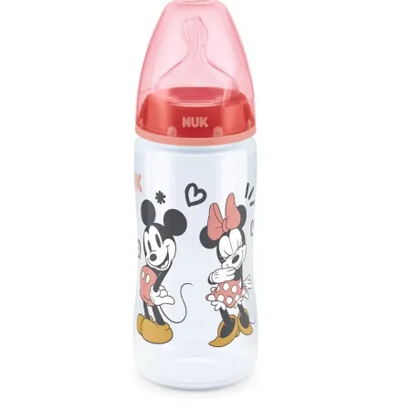 Biberón First Choice Mickey/Minnie control temperatura, silicona TM (6-18) 300ml.Nuk