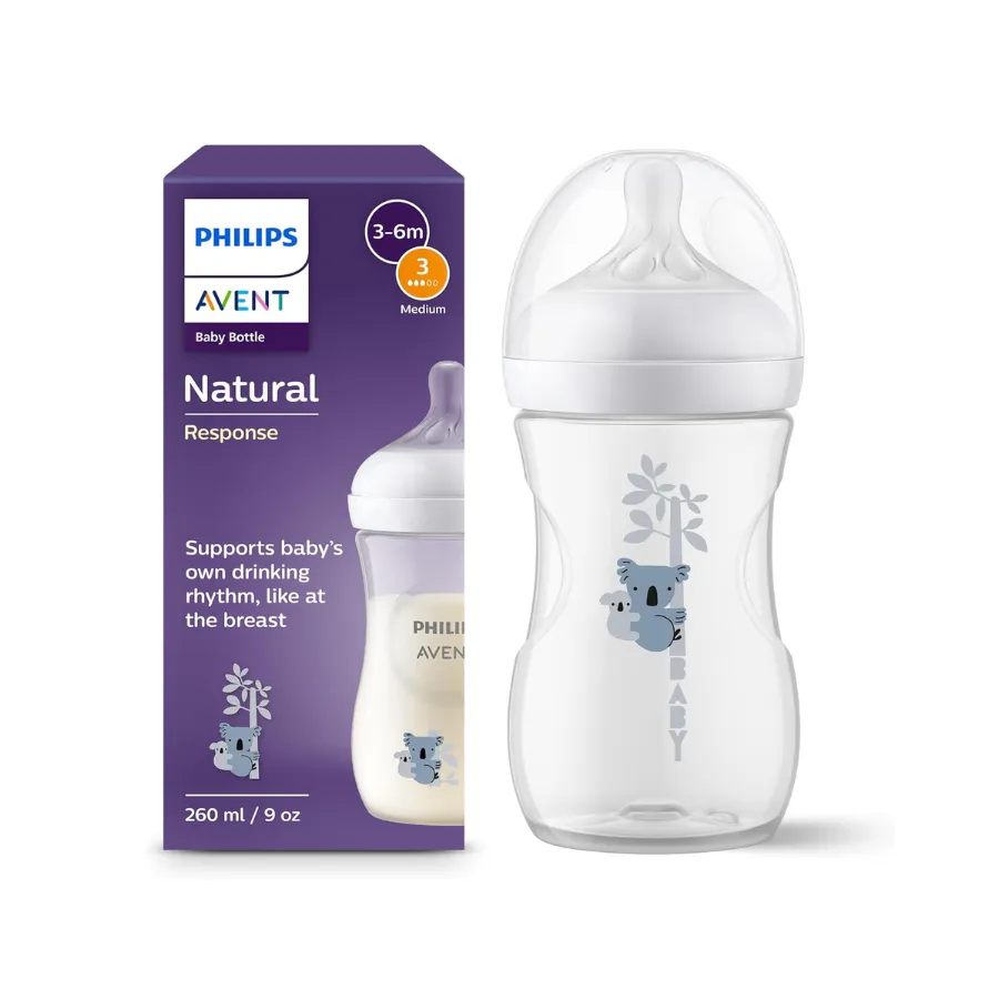 Biberón Philips Avent Natural Response 260 ml Anticólico, Flujo Natural, Sin BPA – Diseños Variados