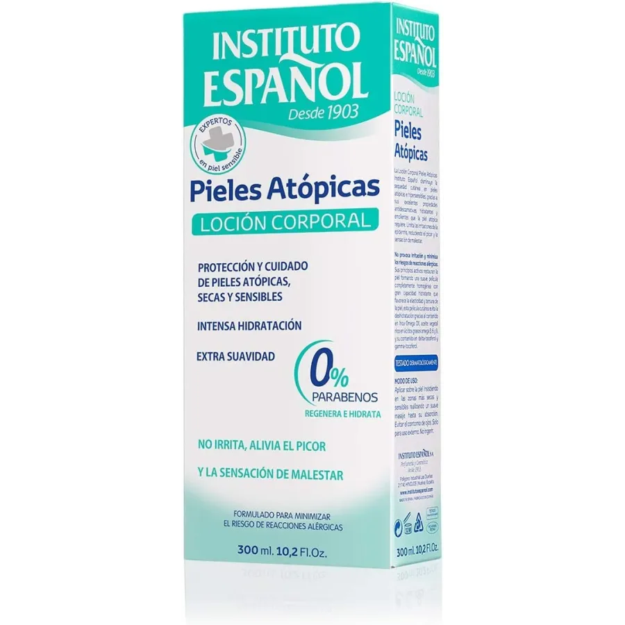 La piel atópica requiere de cuidado diario para prevenir la aparición de nuevos brotes. Instituto español ha formulado esta loción corporal específica para el cuidado integral de la piel atópica. Cuenta con una triple acción que hidrata en profundidad, regenera el manto lipídico e impide la sequedad calmando eficazmente la irritación y el picor de la piel atópica. Enriquecida con potentes agentes antidescamativos, hidratantes y emolientes para recuperar el aspecto natural de la piel. Textura fluida para una fácil aplicación y absorción. Úsala en tu rutina diaria y disfruta de una piel sana.