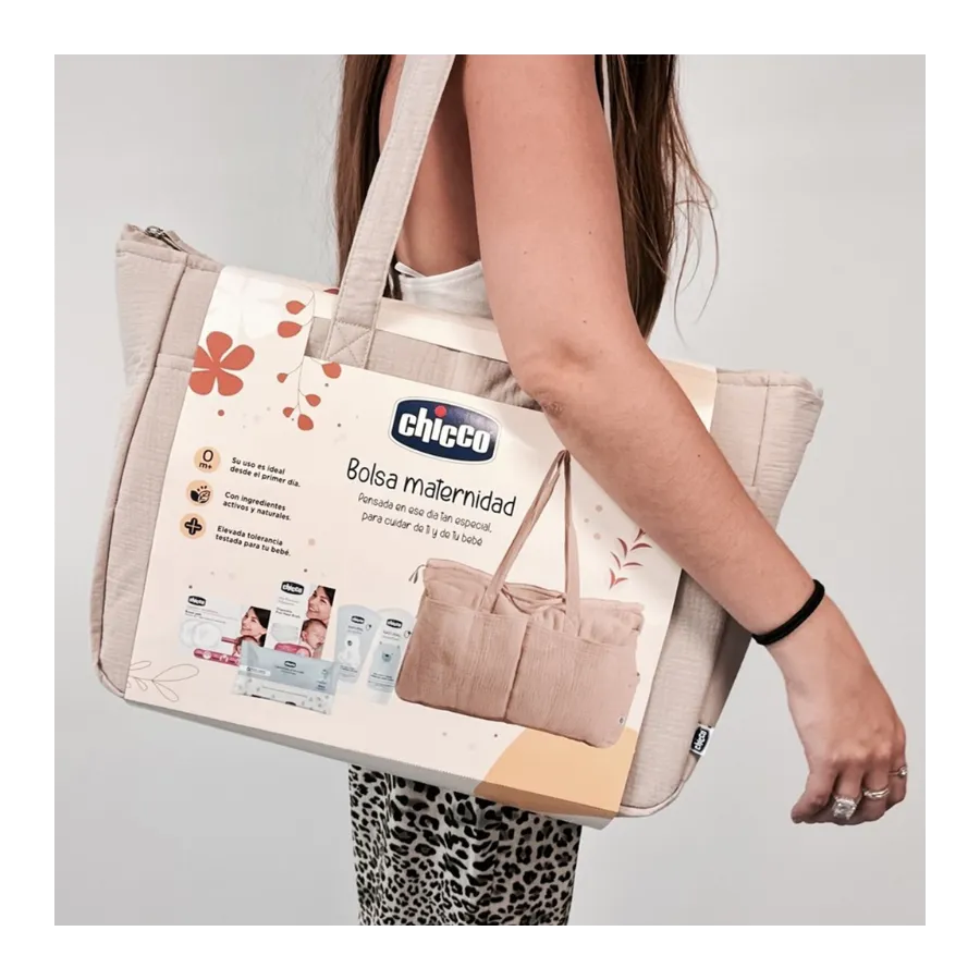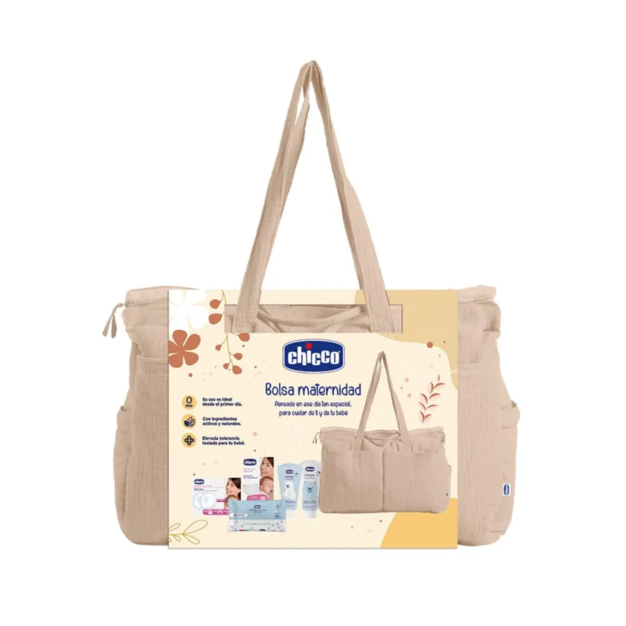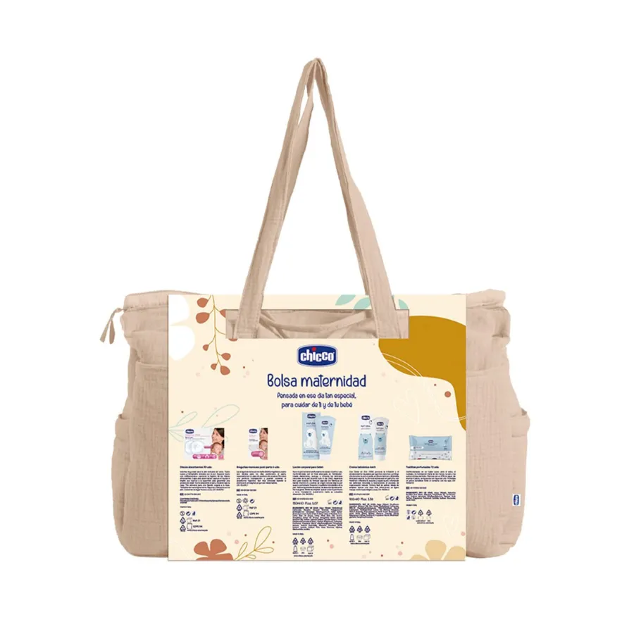Este modelo Chicco está pensado para cubrir todas las necesidades del parto y postparto inmediato. Contiene productos reales que usarás desde el minuto uno, tanto para ti como para tu bebé.