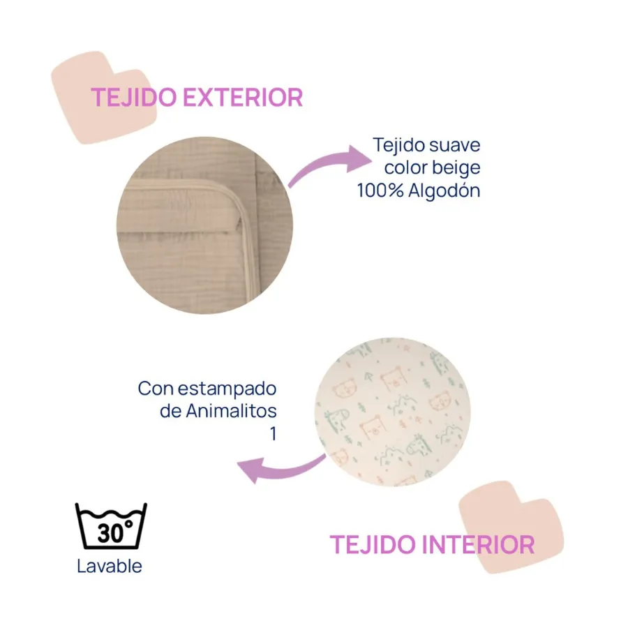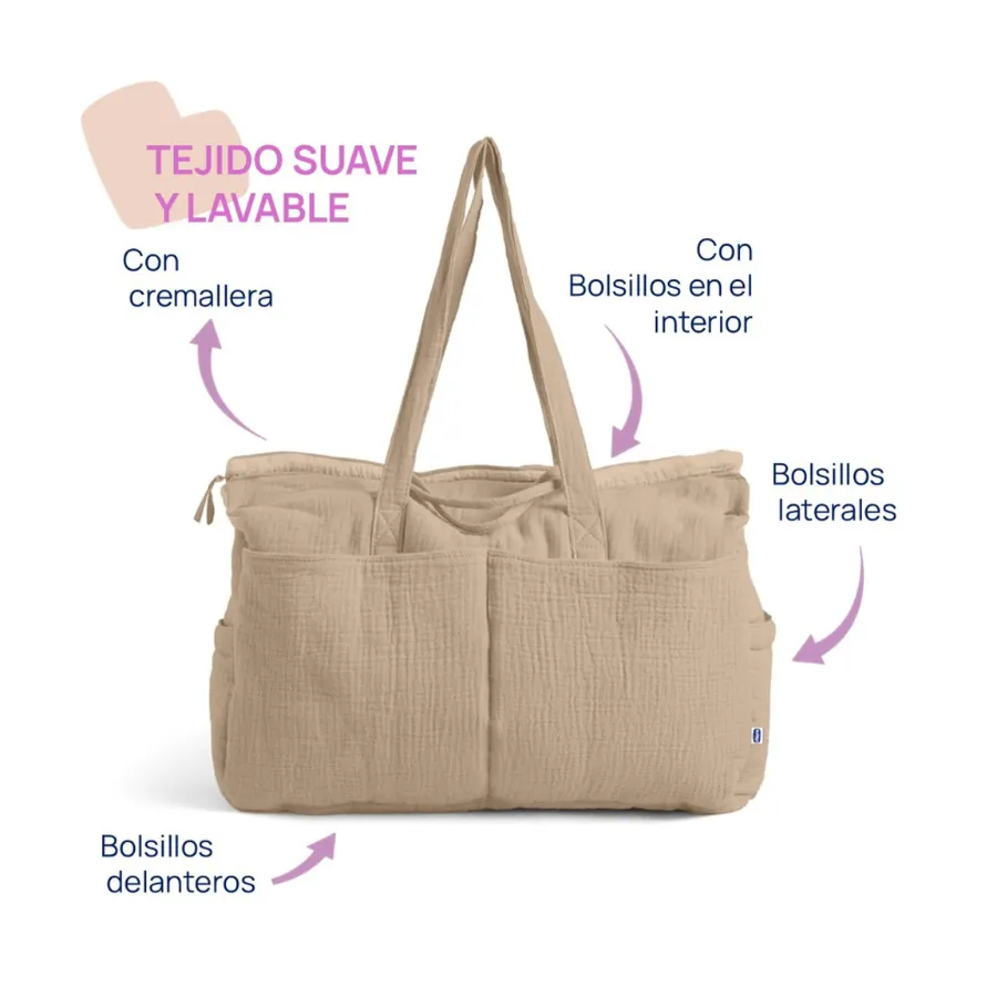 Con un diseño moderno y neutro, esta bolsa combina funcionalidad y estética. Incluye bolsillos exteriores, interiores y laterales, todos con cierre de cremallera, para que cada objeto tenga su lugar. Su estructura te permitirá llevar desde pañales hasta documentación médica sin problemas.