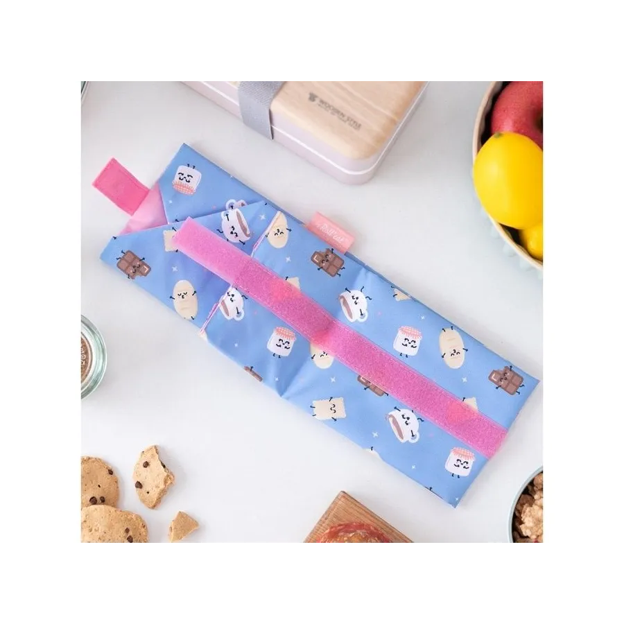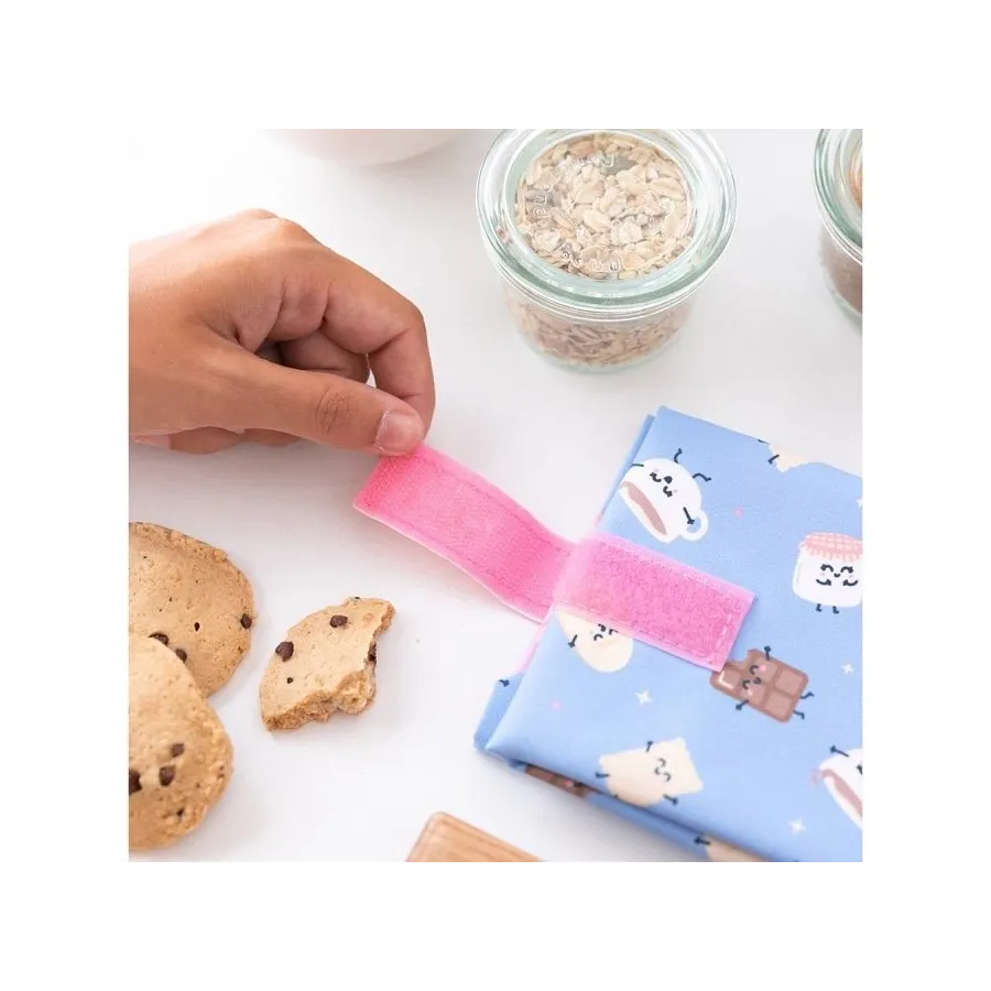 ¡Diga adiós a los envoltorios desechables! El porta bocatas es reutilizable y muy fácil de limpiar. Su cierre plegable se ajusta a cualquier alimento.