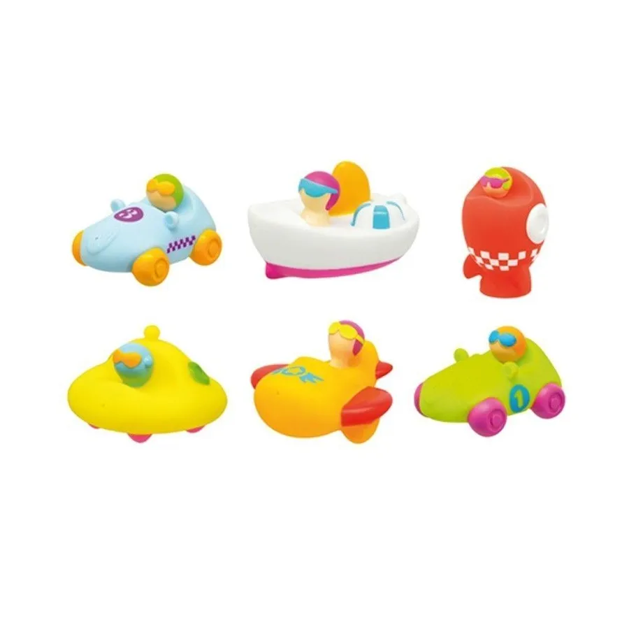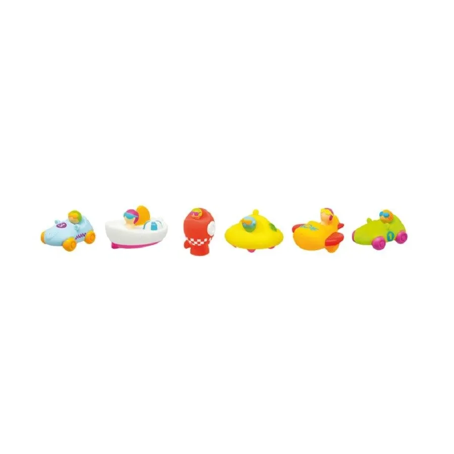 Bote de 6 juguetes de baño para tu bebé, con formas suaves, redondeadas y divertidas para convertir el baño en el momento más especial del día.