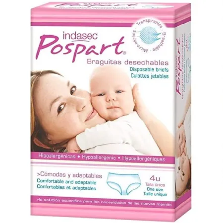 Las Braguitas Indasec Posparto Talla Única (4 Uds.) desechables han sido diseñadas especialmente para los días posteriores al parto, indicadas para sujetar las compresas postparto los primero días.