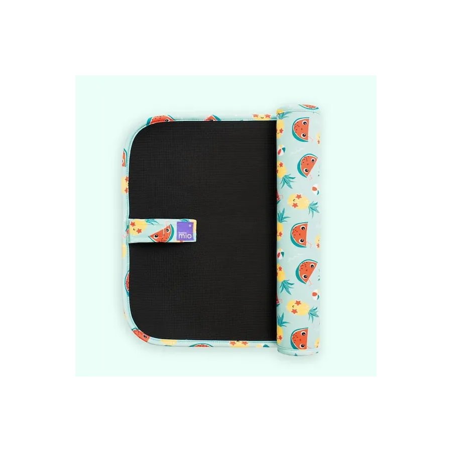 Este hermoso Cambiador para natación de Bambino Mio es ideal para viajar, y fácil de enrollarse y doblarse. Practicidad para cambiar a tu bebé en la piscina, en el vestuario o en la playa.