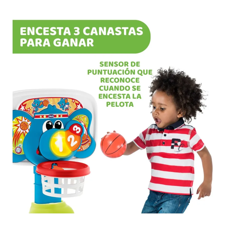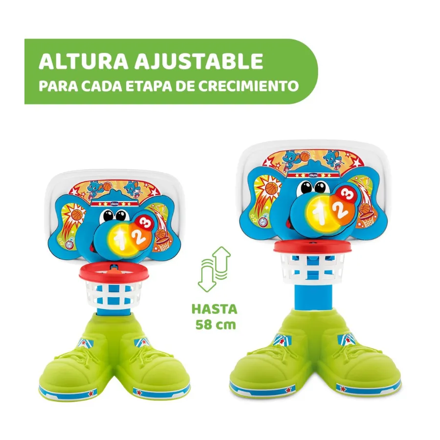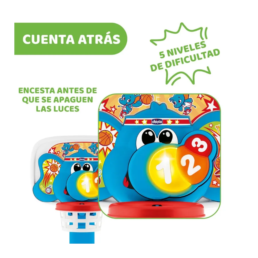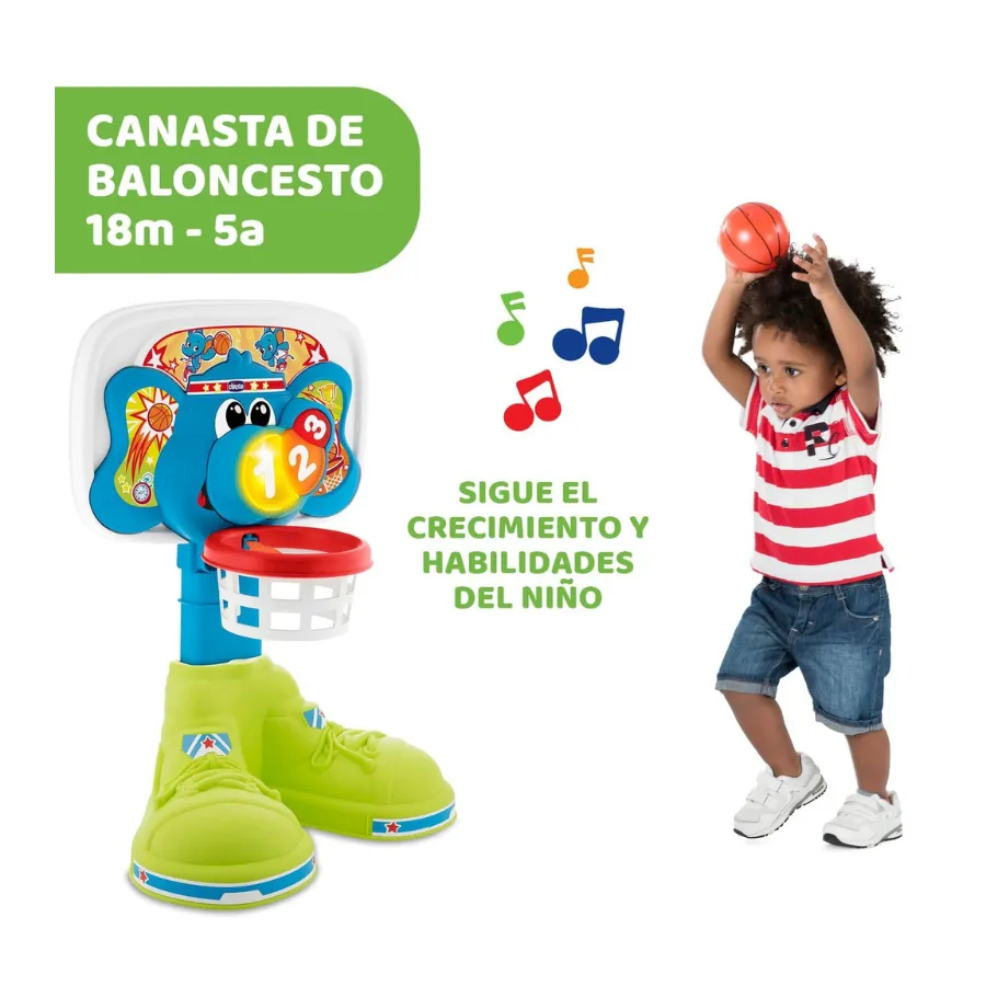 La Canasta de baloncesto Basket 123. Chicco es mucho más que un juguete: es una herramienta de desarrollo motriz y sensorial. Diseñada especialmente para niños a partir de 18 meses, esta canasta interactiva infantil con luces y sonidos estimula la coordinación mano-ojo, el movimiento y la repetición a través del juego.