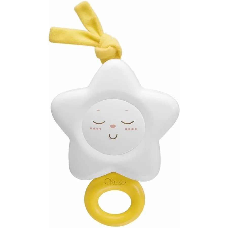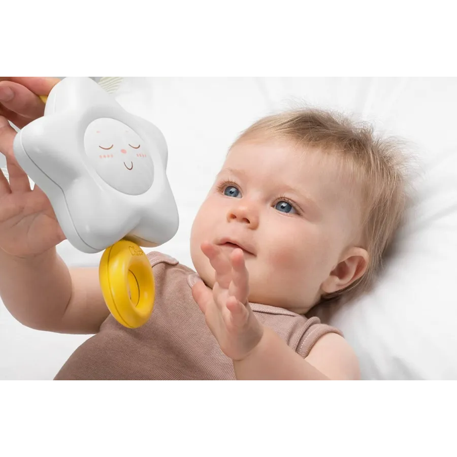 Un bello clásico para colgar en la cuna, con un toque de modernidad la nana Estrella de Chicco. Tiene un hermoso diseño de Luna, con formas suaves redondeadas. Al tirar de la anilla se puede escuchar la melodía que calmará suavemente al bebé.