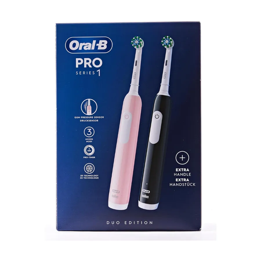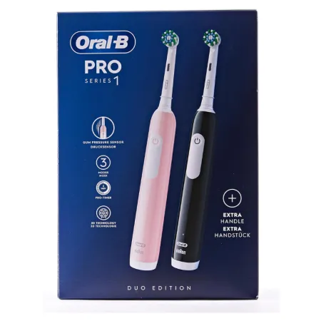 El Oral-B Pro Series 1 Twin Pack integra todas las funciones que necesitas: sensor de presión, modos personalizados, temporizador, cabezales intercambiables y una batería duradera. Compatibilidad con la mayoría de cabezales Oral-B, como CrossAction, Sensitive Clean o 3D White.