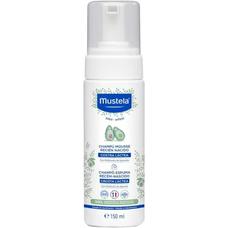 Champú Mousse Recién Nacido de Mustela limpia con suavidad el cabello y el cuero cabelludo de tu recién nacido. Champú ideal para la costra láctea, ayuda a eliminarla y a prevenir su aparición. No pica en los ojos.