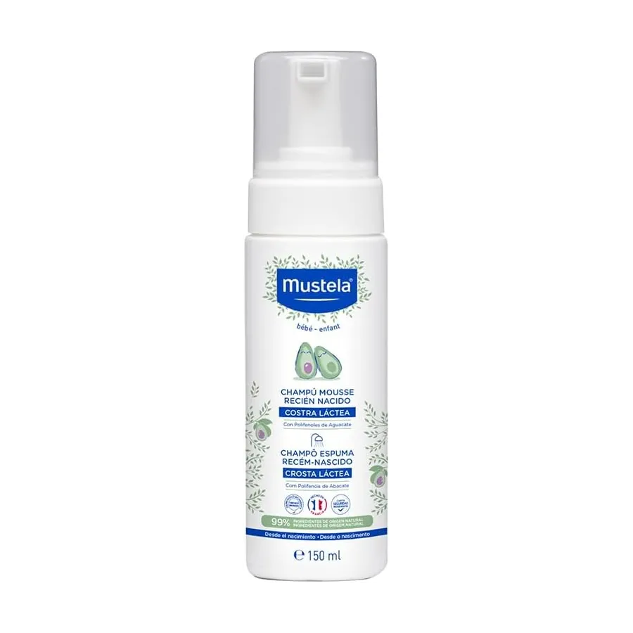 Champú Mousse Recién Nacido de Mustela está hecho con una textura de espuma, fácil de aplicar y particularmente adaptada para el delicado cuero cabelludo de tu recién nacido. Deja un olor único sobre el cabello. Se aclara con facilidad. Eficaz para limpiar con suavidad y para el cuidado de la costra láctea.
