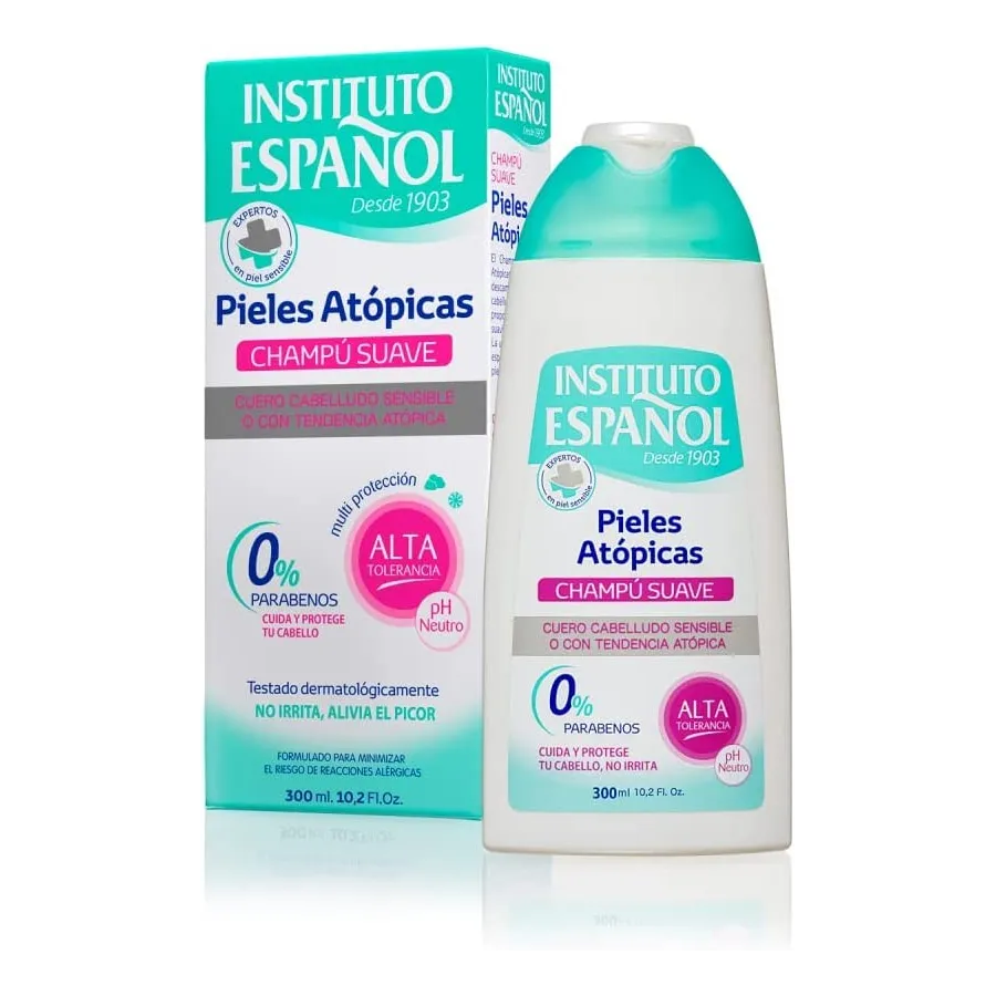El champú piel atópica de Instituto español limpia eficazmente el cabello aportando nutrición y cuidado al cuero cabelludo combatiendo los síntomas de la piel atópica.