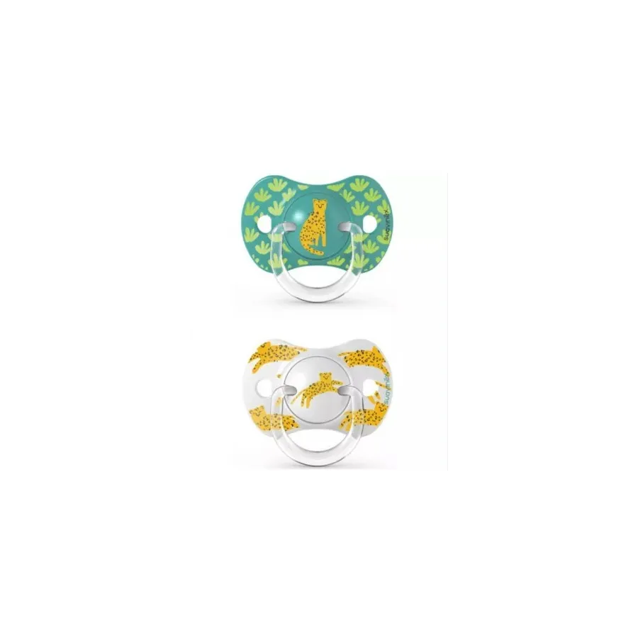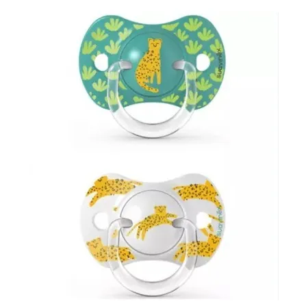 Este increíble pack de dos Chupetes de la colección XS Pro de Suavinex, con hermosos y divertidos diseños inspirados en la naturaleza, dispone de una tetina fisiológica de silicona , que al ser más estrecha y plana en la base, permite que el chupete quede bien colocado en la boca del bebé, ejerciendo la mínima presión sobre el paladar, adaptándose perfectamente a la boca del bebé, favoreciendo el correcto el desarrollo del paladar. Además, la forma de este chupete hace que sea muy delicado con la piel, por lo que evitará irritaciones o marcas.