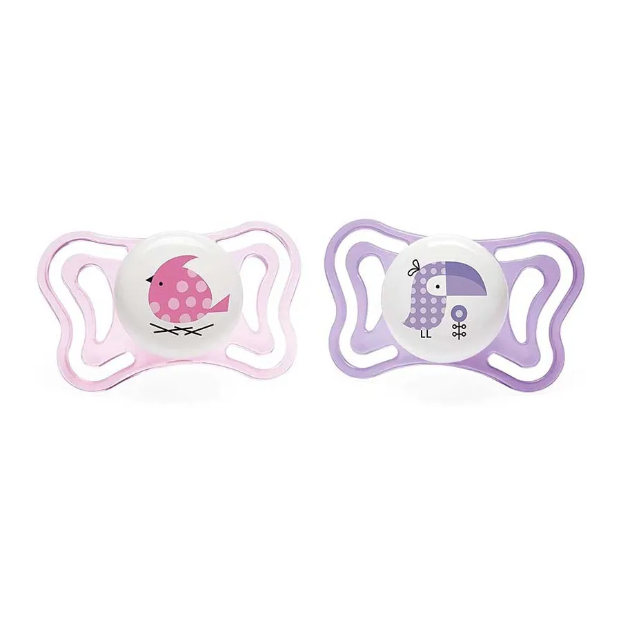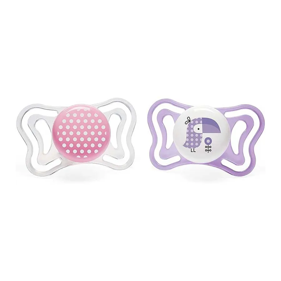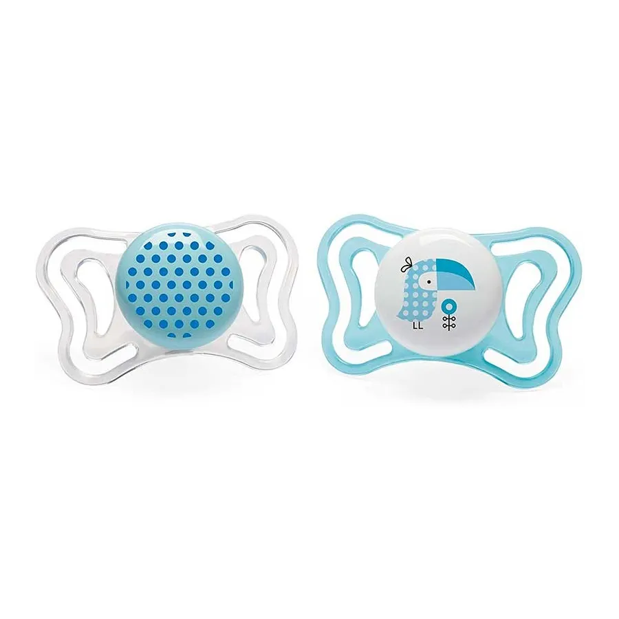 Estos hermosos Chupetes Physio Light silicona 2-6m 2uds de Chicco son una verdadera monada. Pero lo más importante es que tiene una tetina ortodóntica Physio Forma que ayuda a la respiración fisiológica del bebé.