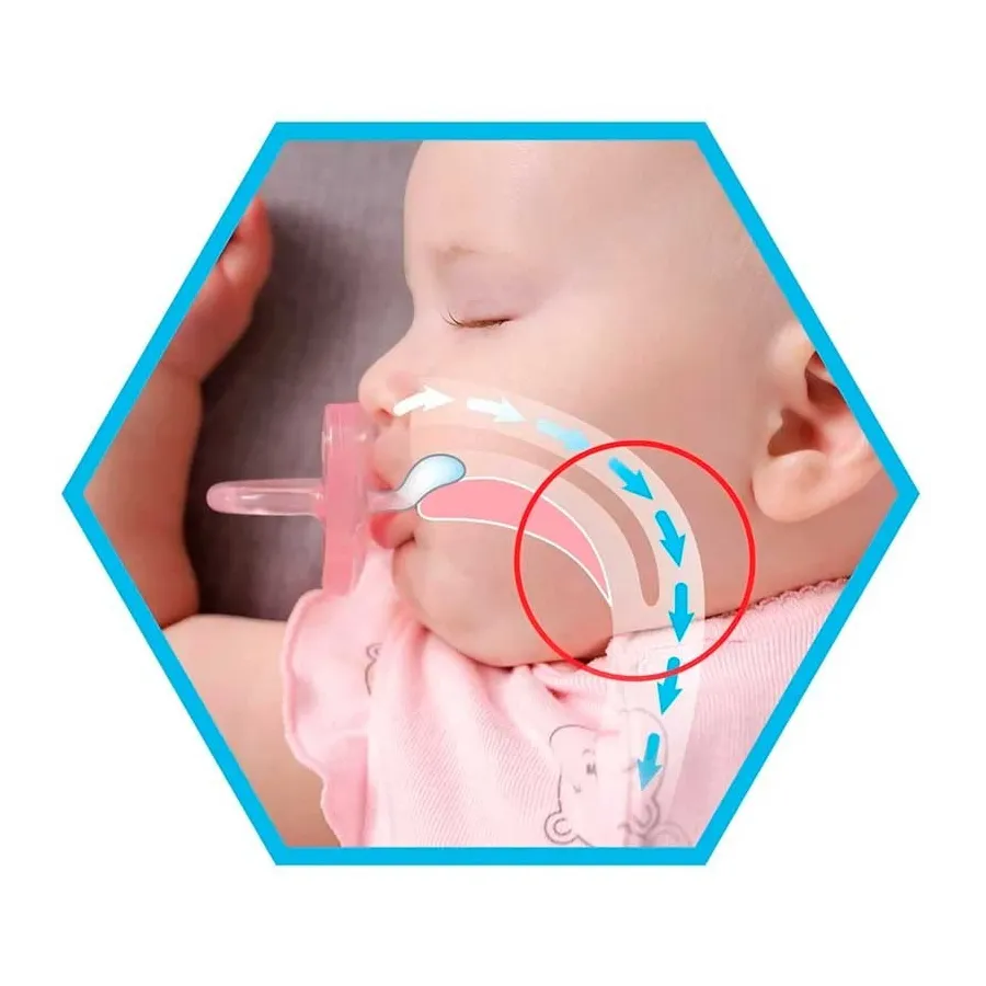 Su forma anatómica distribuye la presión de la lengua en todo el paladar y favorece cierre correcto de la boca. Su tetina exclusiva de silicona “Efecto mamá” es más suave y agradable para tu bebé.