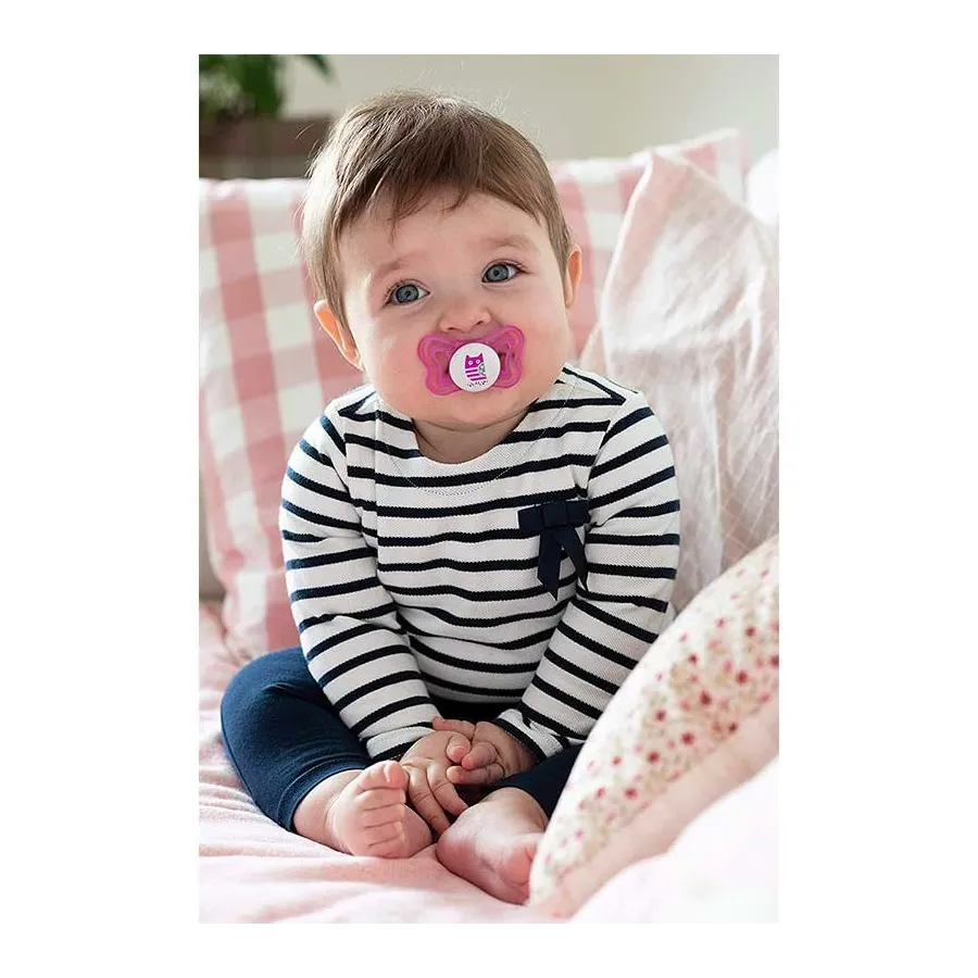 Su forma anatómica distribuye la presión de la lengua en todo el paladar y favorece cierre correcto de la boca. Su tetina exclusiva de silicona “Efecto mamá” es más suave y agradable para tu bebé.