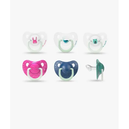 Pack de Chupetes fusión. Tetina anatómica (0-6 meses) con tetina anatómica de silicona , minimiza su contacto con la carita del bebé, gracias a su increíble diseño ergonómico. De igual forma, este chupete está hecho en silicona, un material resistente y blandito que durará por un largo tiempo y no se romperá fácilmente.