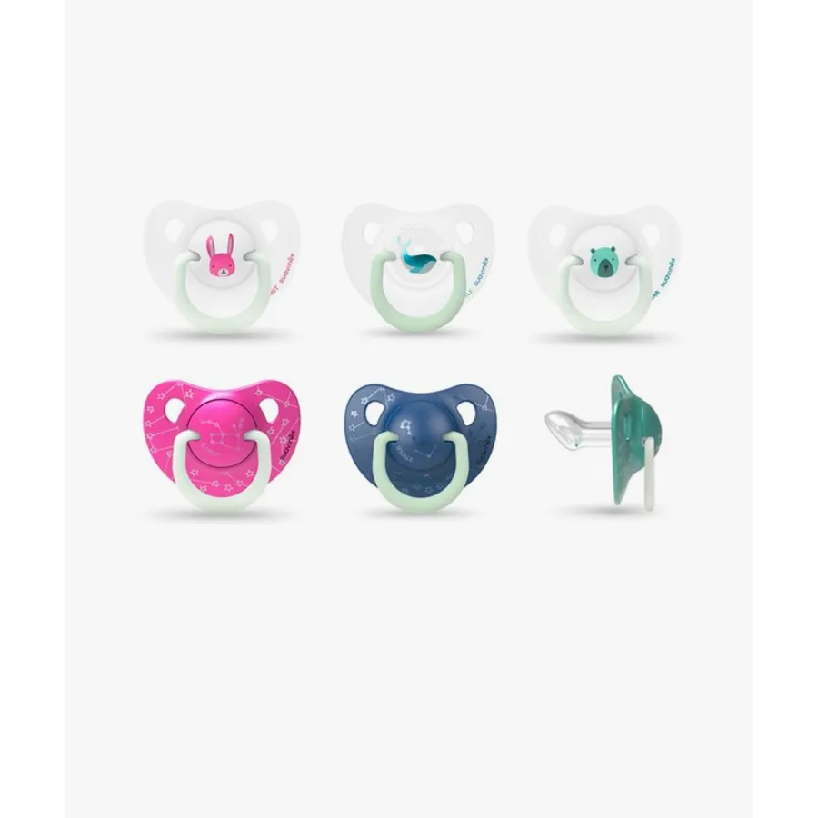 Este increíble pack de dos Chupetes de la colección Premium de Suavinex, con hermosos y divertidos diseños, dispone de una tetina anatómica de silicona que se asemeja a la forma del pezón de la madre y se adapta perfectamente a la boca del bebé, favoreciendo el correcto el desarrollo del paladar. Además, la forma de este chupete hace que sea muy delicado con la piel, por lo que evitará irritaciones o marcas.
