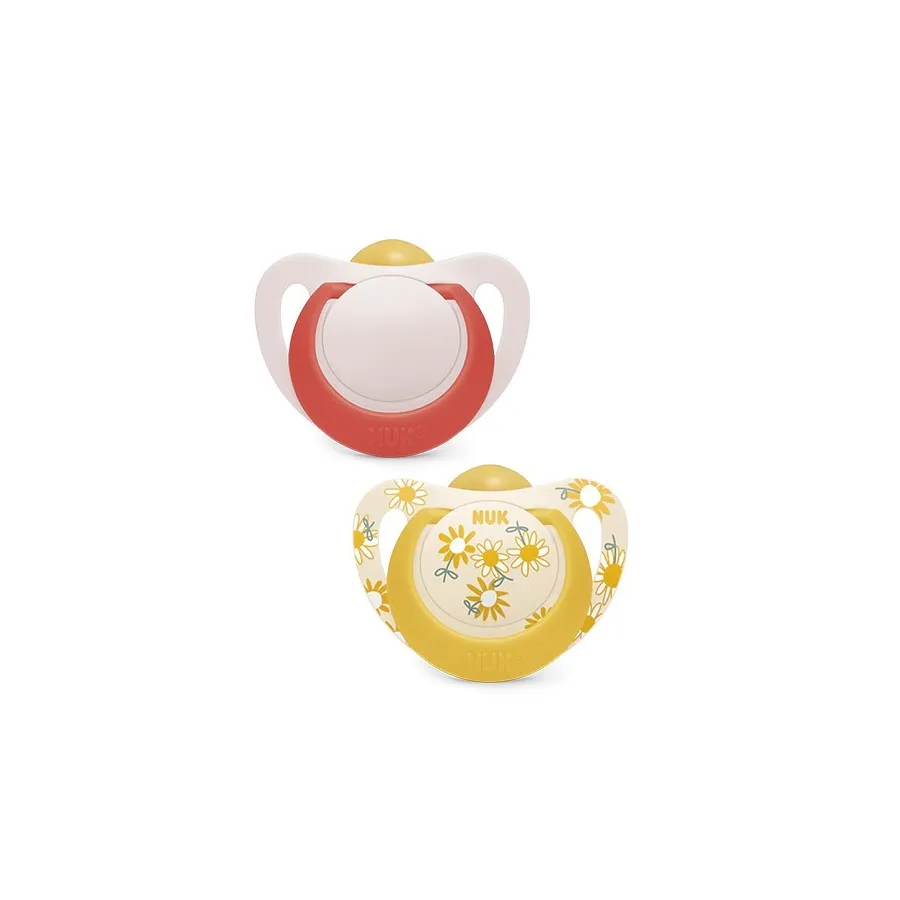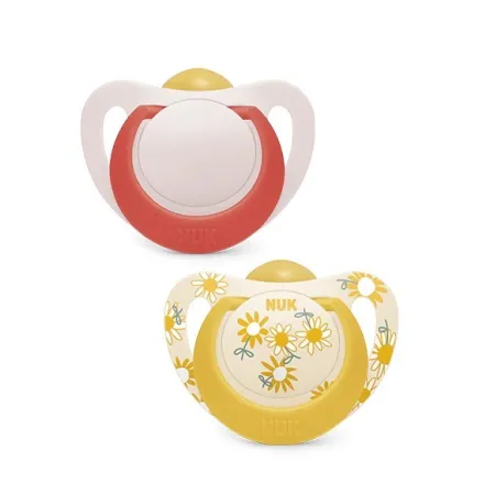 Una opción segura y duradera para cada etapa del desarrollo de tu bebé. Aprovecha este pack de 2 chupetes NUK Star y ahorra en cada compra.