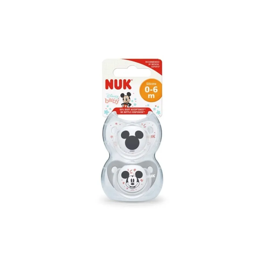 Pack de 2 chupetes. Disponibles en talla 1 (0-6m) y talla 2 (6-18m). Elegante diseño de Mickey.